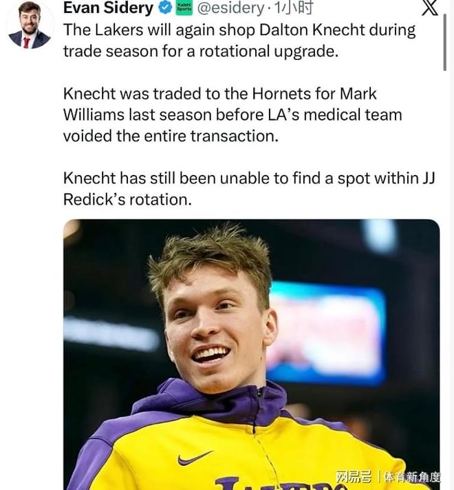 其实啊,早在上赛季,也就是今年二月份的时候,湖人本来都打算把克内克特,还有雷迪什,再加上31年无保护首轮签和30年首轮互换权,一起打包送到黄蜂去呢。可惜呀,马威体检没通过,这笔交易最后就黄啦。说句实在话,要是克内克特不在人才济济的湖人打球,说不定早就闯出一片天啦,最起码表现肯定比现在好。要是本赛季能成功被交易出去,对他来说,那可就是个人生涯的重要转折点啦!