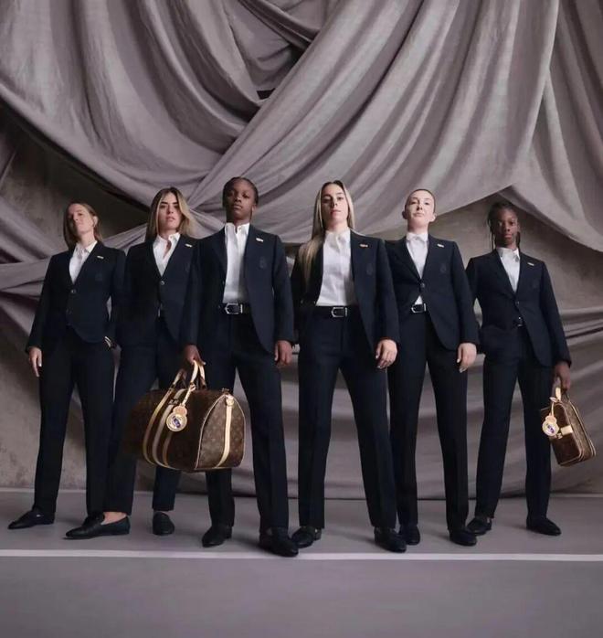 而国际顶级奢侈巨头LV(Louis Vuitton)更是在去年6月为皇马男足提供正装后,进一步加码该俱乐部的女足赞助权益——为女足队员打造量身定制的专属正装与旅行服饰系列。更早之前,中国女足与Prada的合作以及同步推出的正装大片同样为人们津津乐道。