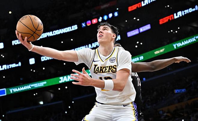 本场比赛中,湖人的锋线侧翼大将杰克-拉拉维亚(Jake LaRavia)的表现依然是非常抢眼的。拉拉维亚全场出场34分35秒,投篮13中10,三分线外3中1,罚球4中3,以超高的效率得到了25分8篮板3助攻4抢断的数据,还有1次失误和4次犯规,正负值为+8。拉拉维亚在进攻端又一次展现出了自己全面的得分能力,他能够利用各种方式完成得分,而且他还具备相当不错的传球能力和策应能力。拉拉维亚在进攻端的存在感非常高,他在球队两大后场球星身边也能够将自己的特点完全发挥出来,他在场上也能够帮助球队拉开空间。不仅如此,他在防守端的表现也是可圈可点的,他也是证明了自己有着超强的个人防守能力。拉拉维亚在本场比赛中再次打出了攻守兼备的表现,这也是球队能够取得胜利的重要因素。